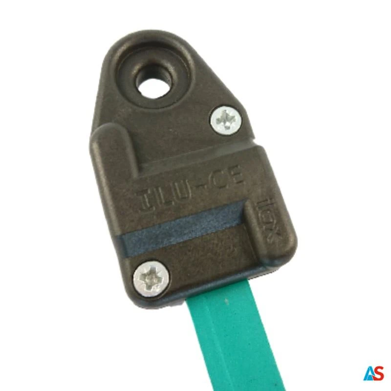 ILU-CE Końcówka/hak/zacisk do zawieszenia ILU-przewodu płaskiego (=13,3*5,5mm), 2 czarne plastikowe połówki z 4 śrubami ze stali nierdzewnej, 1 sztuka na linię w celu zaizolowania końcówki przewodu