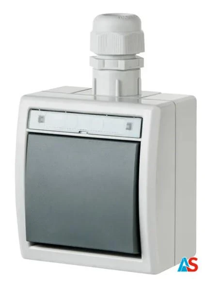 Łącznik pojedynczy schodowy n/t IP65 szary 1201-65 Aquant Elektro-Plast Nasielsk. Wysokiej jakości hermetyczny włącznik światła schodowy 1-biegunowy o wysokim stopniu szczelności IP65. Dzięki temu parametrowi kurz i strumień wody nie zakłócą funkcjonowania osprzętu. Do produkcji elementów wykorzystywana została technologia wtrysku dwukomponentowego. Model 1201-65 jest odporny również na działanie promieni UV. Włącznik schodowy wyposażony jest w okienko opisowe. Montaż na zaciski śrubowe.