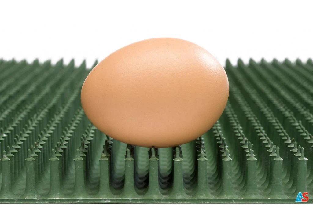 Mata Vencomat zapewnia miękkie i wygodne podłogi we wszystkich gniazdach firmy Vencomatic. Pokryta jest unikalnymi małymi kołkami, które mają kontakt z jajkami w minimalnym stopniu, co skutkuje minimalnym kontaktem jajek z kurzem i zanieczyszczeniami.