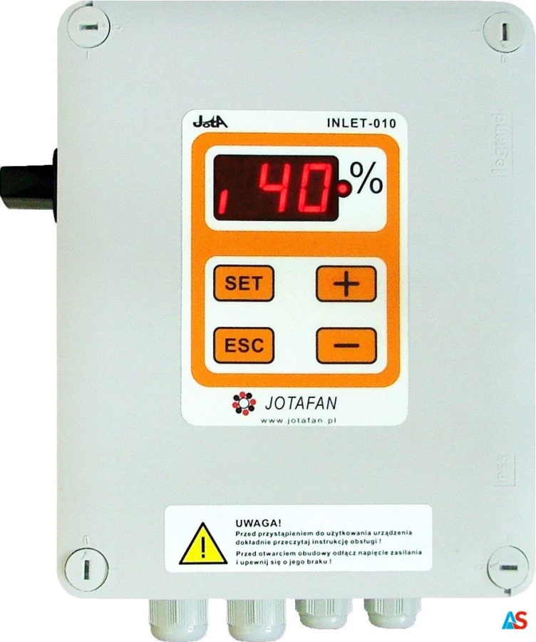 Moduł INLET–010–2PK-24V jest regulatorem elektronicznym przeznaczonym do sterowania pracą serwomotoru (do otwierania i zamykania okien uchylnych) zasilanego napięciem stałym 12..24V. Poziom otwarcia okien może być zadawany napięciem analogowym 0..10V lub poprzez interfejs RS-485 do współpracy m.in. z regulatorami systemu JOTAFAN. W urządzeniu zastosowano ręczny przełącznik umieszczony na zewnątrz, z boku obudowy, do wyboru trybu pracy serwomotoru: praca automatyczna, ręczne otwieranie, ręczne zamykanie, wyłączenie zasilania serwomotoru. Dodatkowo, w obwodzie zestyków przekaźników zainstalowano tzw. „diodę gaszącą” i elementy RC do tłumienia zakłóceń elektromagnetycznych.