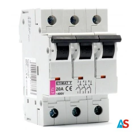 Ogranicznik mocy ETIMAT T 3P 20 A jest wyłącznikiem nadprądowym pozbawionym członu zwarciowego i posiada tylko człon przeciążeniowy (termiczny). Wyłącznik zaplombowany (zablokowany dostęp do jego zacisków prądowych) instaluje się w rozdzielnicy tak, aby jego dźwignia napędowa była dostępna dla odbiorcy, który w razie samoczynnego zadziałania na skutek przekroczenia mocy przyłączeniowej lub z innych powodów może go samodzielnie załączyć bez wzywania ekipy zakładu energetycznego.