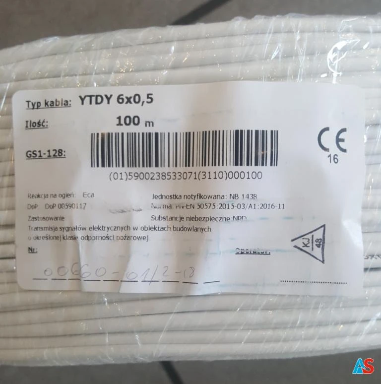 Przewody do systemów alarmowych i domofonów. YTDY – przewód telekomunikacyjny (T) o żyle miedzianej jednodrutowej o średnicy 0,5 mm (D), o izolacji polwinitowej (Y) i o powłoce polwinitowej (Y). Zalecane zastosowanie: przewody przeznaczone są do pracy w systemach sterowania, sygnalizacji, kontroli, w technice pomiarowej oraz do transmisji danych za pośrednictwem sygnałów analogowych i cyfrowych w instalacjach elektroniki przemysłowej i automatyki - do ułożenia na stałe - instalacja domofonów i urządzeń alarmowych.