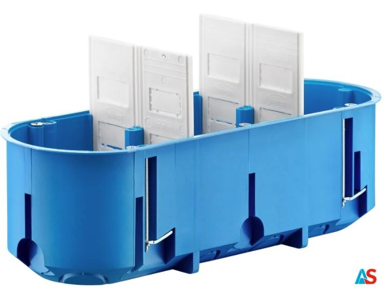 Puszka 210mm 68mm 61mm P 3x60D 32104203 elektroinstalacyjna to model wielopolowy, przeznaczony do montażu pod tynkiem, głęboki. Zalicza się go do serii Multibox. Tego rodzaju produkty są powszechnie stosowane przez elektryków profesjonalistów i domowych majsterkowiczów do montażu osprzętu takiego jak łączniki, gniazda oraz ściemniacze. Puszka jest przeznaczona do instalacji w ścianach pustych gipsowo-kartonowych. Nasz e-sklep ma w swojej ofercie puszki 210mm 68mm 61mm P 3x60D 32104203 wyprodukowane przez firmę Simet. Znakomite parametry użytkowe, wysoka jakość oraz niezawodność wyrobów sygnowanych tą marką są przez nas gwarantowane. Wyrób stanowi część serii niebieskiej, która została wyprodukowana z materiałów samogasnących oraz bezhalogenowych. Ma trzy pola, na których da się umieścić maksymalnie trzy elementy osprzętu. Odległości między elementami są tak dobrane, aby użycie wspólnej ramki było możliwe. Opisywane akcesorium dysponuje 7 osłabieniami na ściankach bocznych, przeznaczonymi do rur o średnicy 20 mm. 9 dodatkowych osłabień pozwala wprowadzać rury 9 mm. Średnica zewnętrzna produktu wynosi 3x68mm, głębokość to z kolei 60 mm. W zestawie z puszką sprzedawane są wkręty ułatwiające montaż osprzętu. Puszka 210mm 68mm 61mm P 3x60D 32104203 oferowana jest przez nas na sztuki. Minimalne zamówienie internetowe to raptem jedna sztuka prezentowanego wyrobu.