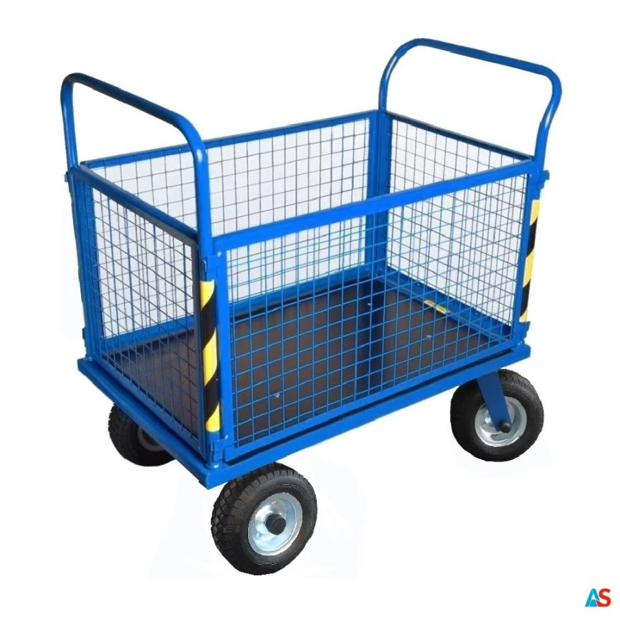 Wózek gospodarczy platformowy 4 – kołowy STACH V zabudowany siatką T - 107/04 jest urządzeniem transportu wewnętrznego (bliskiego) w gospodarstwach rolnych, ogrodniczych, magazynach, przetwórniach itp. Przeznaczony jest do przewożenia produktów i materiałów w opakowaniach typu skrzynie, kartony, worki itp. pojemniki.