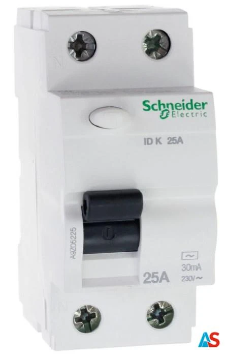 Wyłącznik różnicowoprądowy ID K 2P 25A 30mA typ AC A9Z05225, firmy Schneider Electric. Wyłącznik różnicowoprądowy serii K60 to model 2-polowy o prądzie znamionowym 25A AC i prądzie różnicowym 30mA. Wyłącznik różnicowoprądowy jest bardzo skutecznym urządzeniem w zakresie ochrony przed porażeniem prądem elektrycznym. Zadaniem wyłącznika jest szybkie odłączenie od zasilania chronionej instalacji lub jej wydzielonego fragmentu (obwodu), kiedy pojawia się z nim tzw. prąd różnicowy. Przeznaczony do instalacji 1-fazowej.